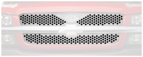 #The Putco Harley-Davidson Stainless Steel Punch Grille is an official Harley-Davidson Licensed Product. This grill features a unique Harley-Davidson wings design, and is the perfect truck accessory for any motorcycle enthusiast. It installs over the existing manufacturer's grille with no drilling or cutting. Made of heavy-gauge NeveRust mirror-finish stainless steel, this exclusive patented punch design is backed by Putco's NeveRust lifetime warranty. A 9/64th hex key is included, and applications are available for most full-size trucks and SUV's.